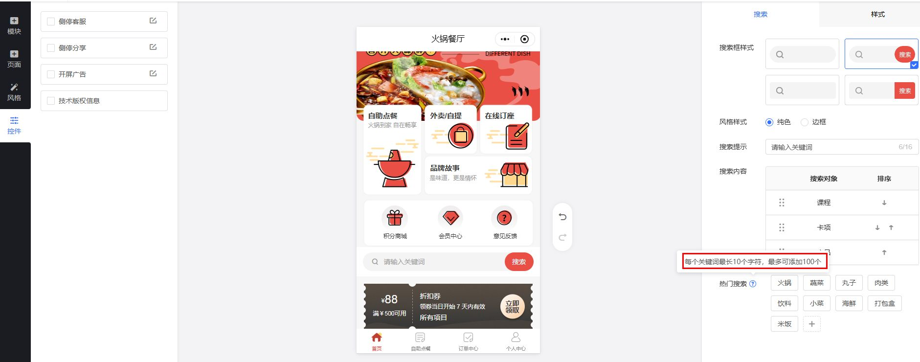 商家根据菜品的热度,提前设置了数十个热门关键词,客户点击搜索栏时,即可快速点击想要的菜品,无需手动输入。