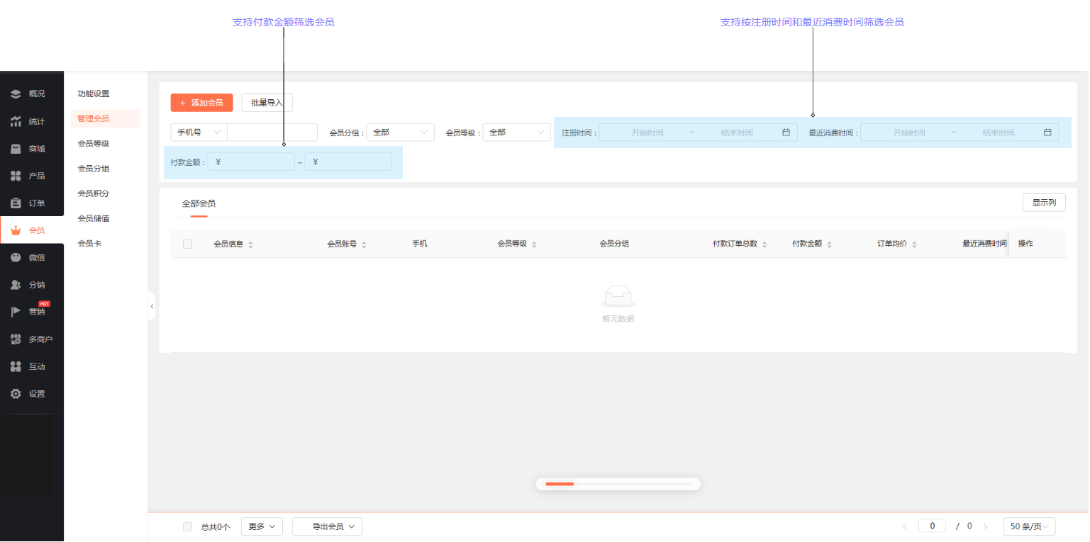 《商城型网站》产品升级更新——会员管理筛选条件优化: