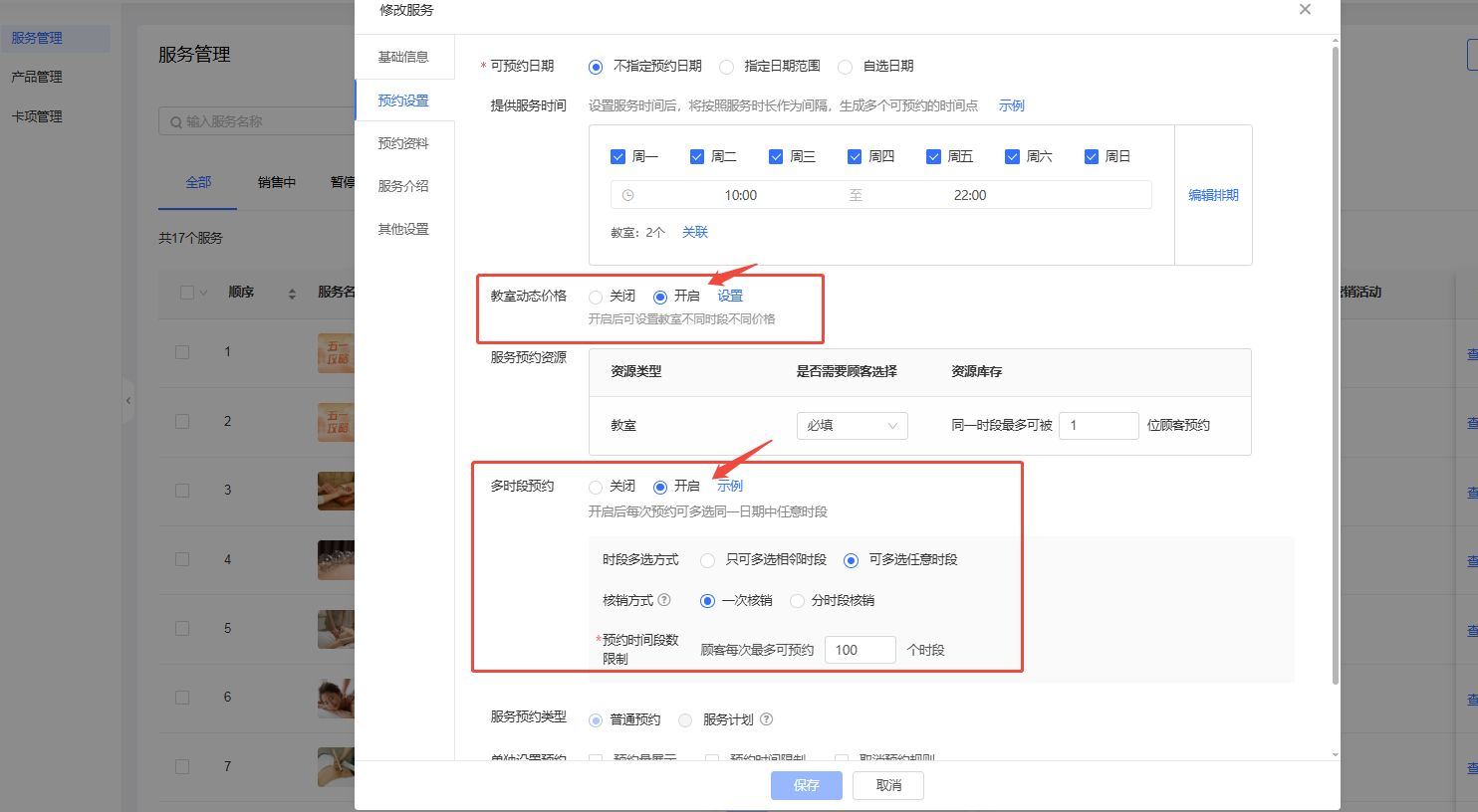 《门店系统》产品升级更新——场地支持跨资源预约和设置动态价格: