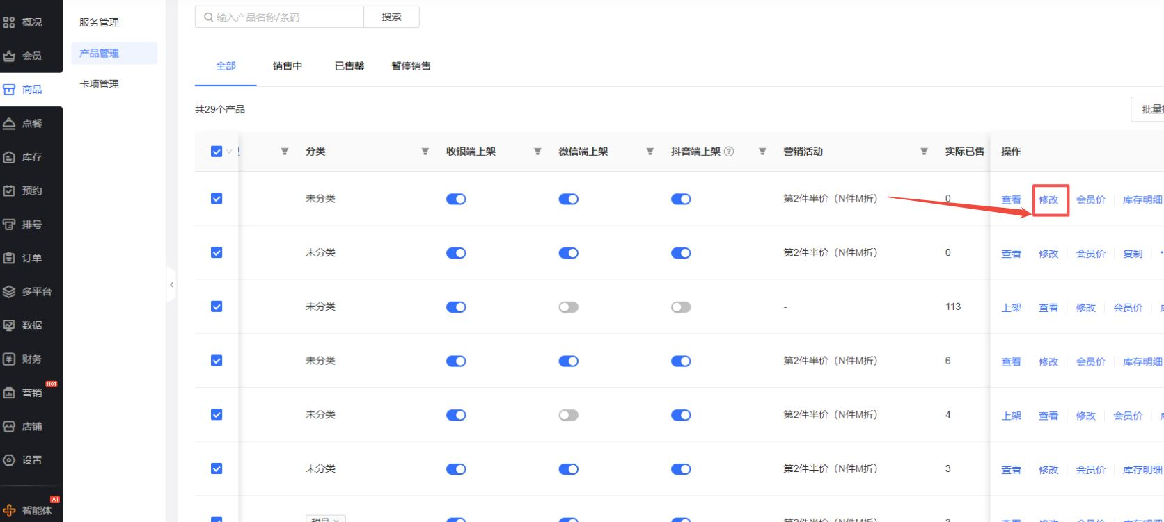 《门店系统》产品升级更新——关联营销活动的商品可编辑:
