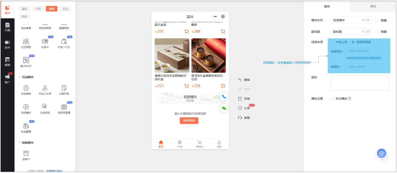 《商城型网站》产品升级更新——小程序支持嵌入视频号视频: