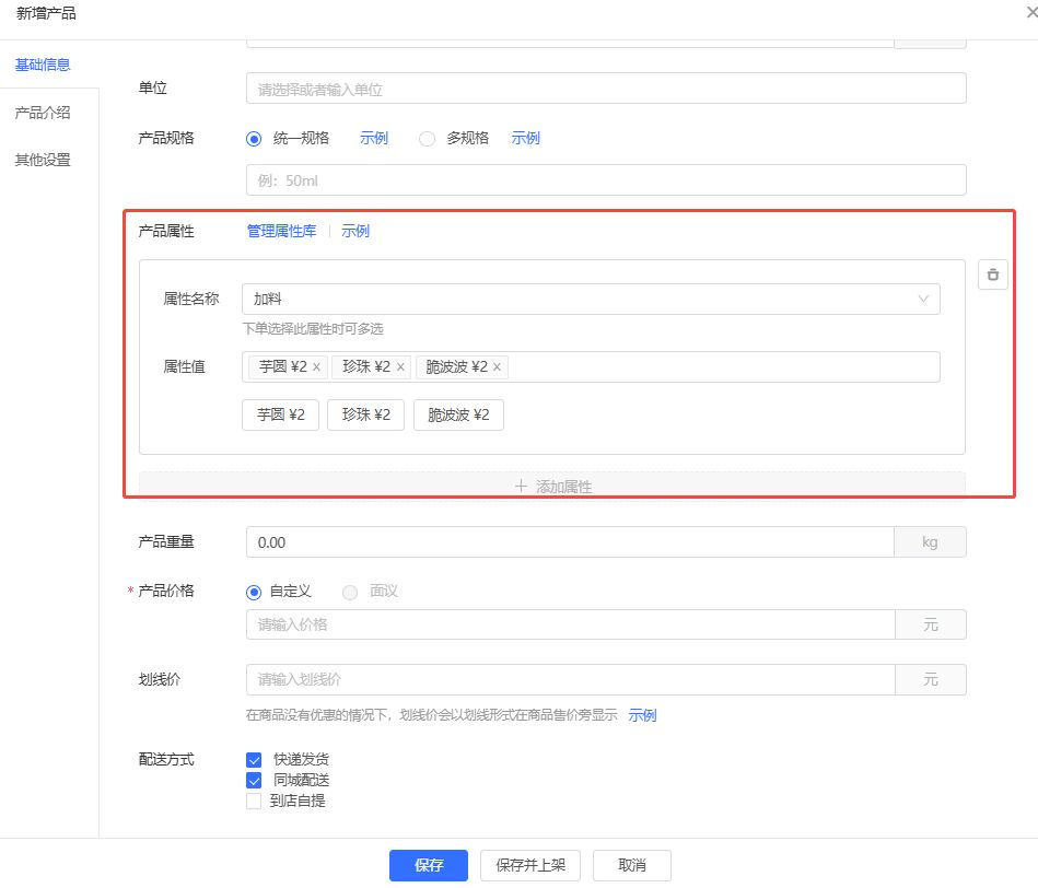 《门店系统》产品升级更新——门店自建商品支持添加属性:
